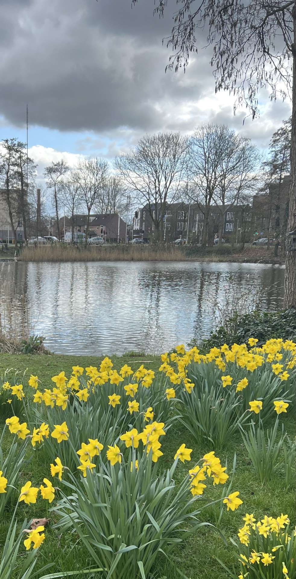 De uitbundige narcissen bij de schakelflats, door Marie-José de Zeeuw