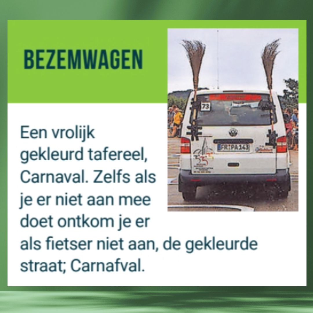 Een vrolijk gekleurd tafereel, Carnaval. Zelfs als je er niet aan mee doet ontkom je er als fietser niet aan, de gekleurde straat: Carnafval.
